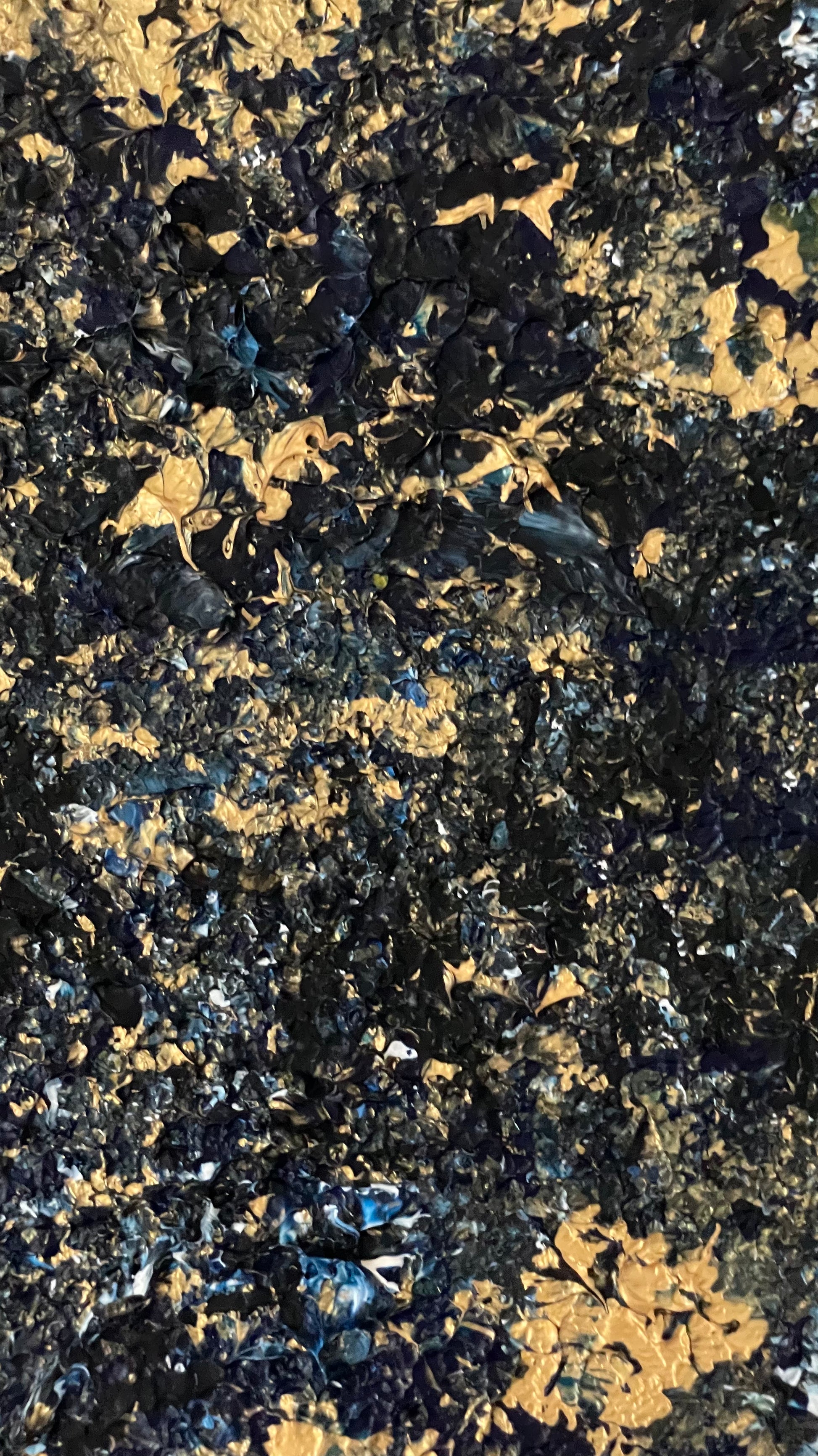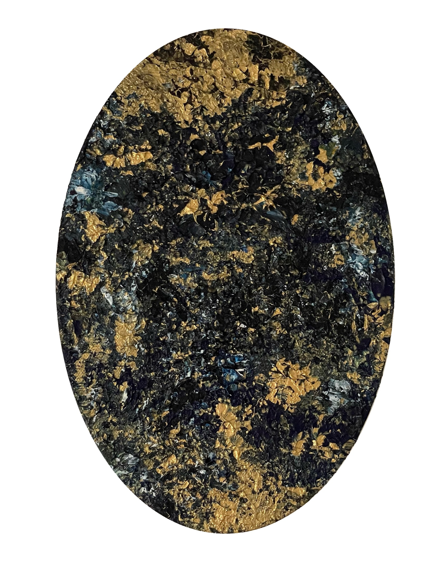 Gold Lines, Blue Depths 1/2 is a captivating painting with blue, dark blue, and gold elements. With its round form, this painting belongs to a series of two and is inspired by galaxies in far-reaching space. Whether as a statement piece in your home or as a centerpiece of a larger collection, this unique painting will bring a touch of cosmic beauty to your walls.