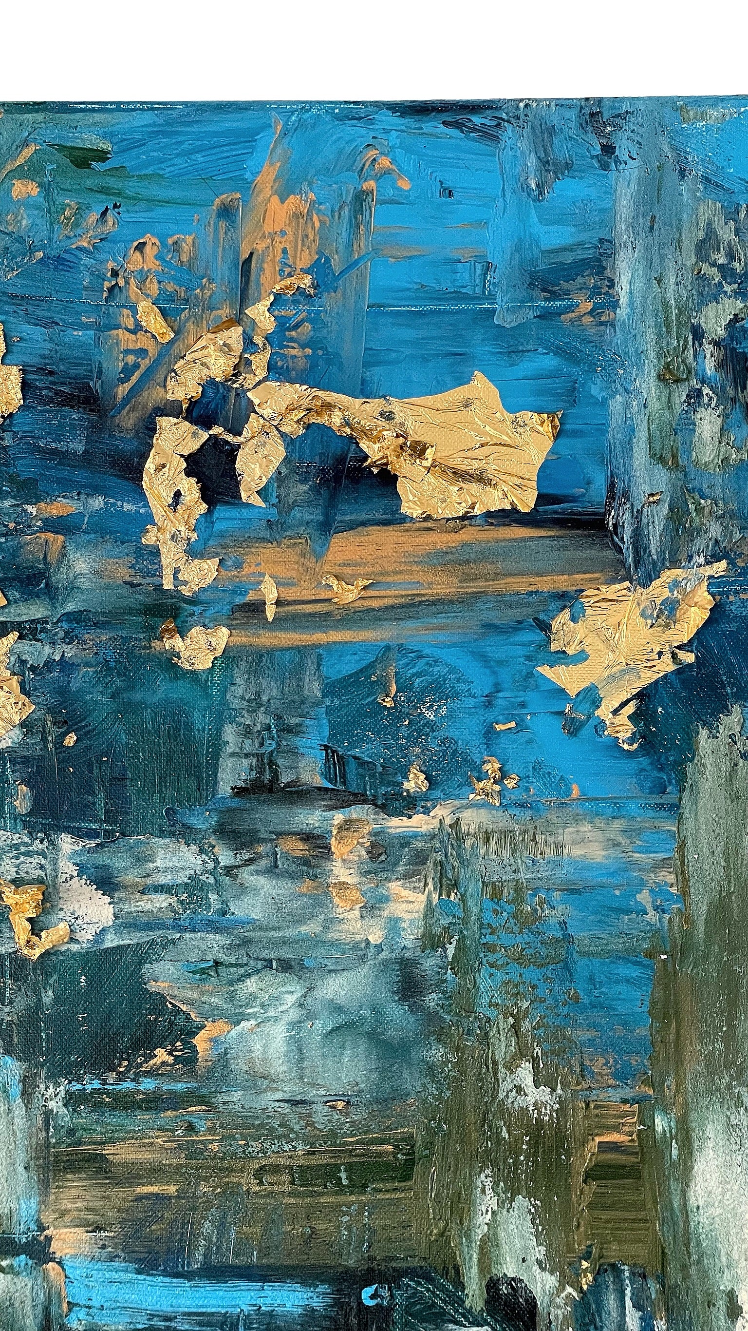 Be transported to a different landscape with this luxurious artwork. My Abstract Painting features majestic blue-green hues, luxe gold elements, and a generous size - perfect for elevating any interior. It is sure to become an unparalleled centerpiece of any art collection.